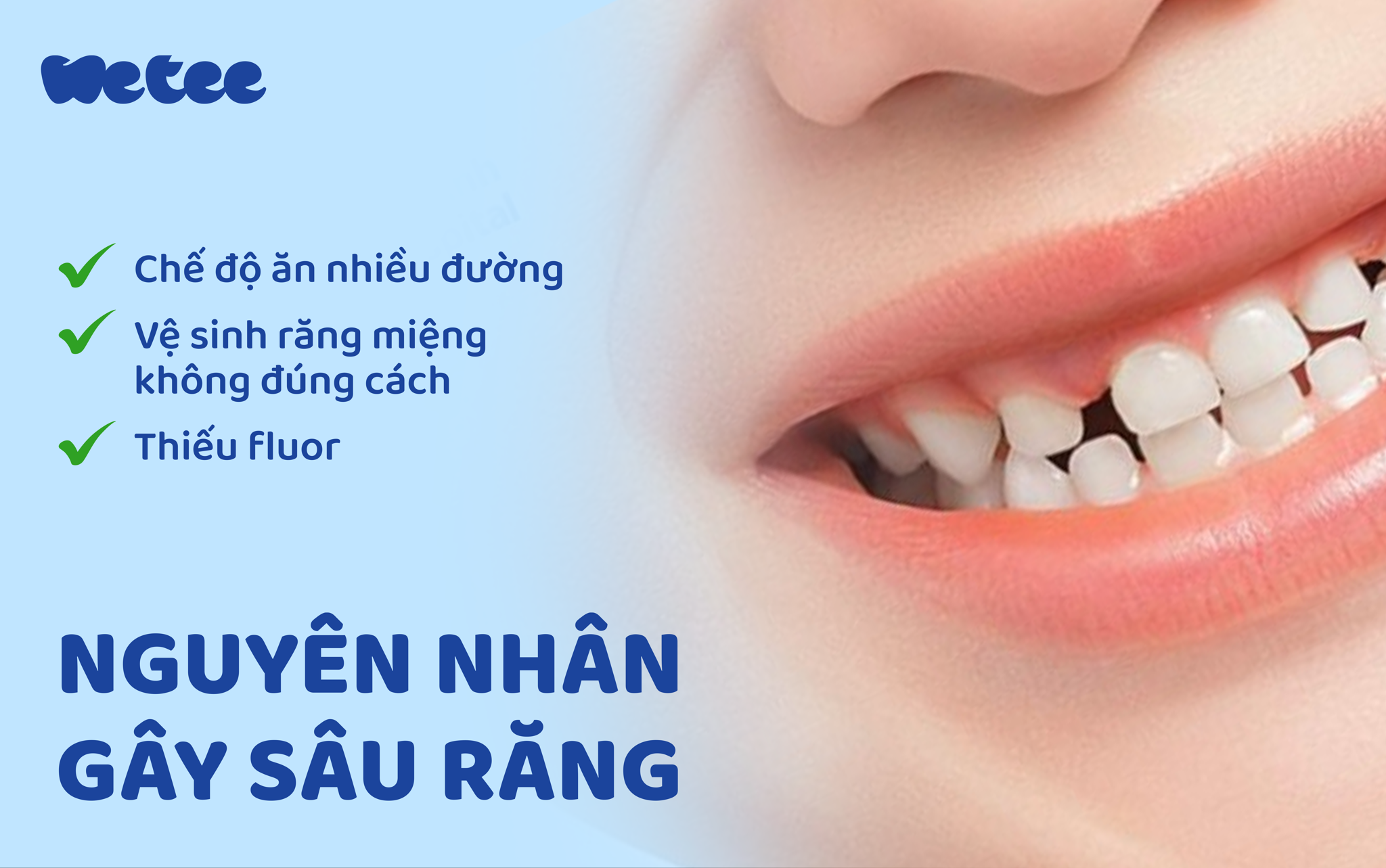 Răng miệng là một phần quan trọng trong sức khỏe của trẻ nhỏ, nhưng nhiều bé gặp phải tình trạng sâu răng từ sớm. Việc chăm sóc răng miệng cho bé và tìm cách trị sâu răng là điều mà nhiều bậc phụ huynh quan tâm. Hãy cùng Wetee tìm hiểu nguyên nhân gây sâu răng, cách trị sâu răng hiệu quả cho trẻ, và các biện pháp phòng ngừa sâu răng. Wetee cung cấp các sản phẩm giúp hỗ trợ chăm sóc và trị liệu răng miệng một cách an toàn và tiện lợi.